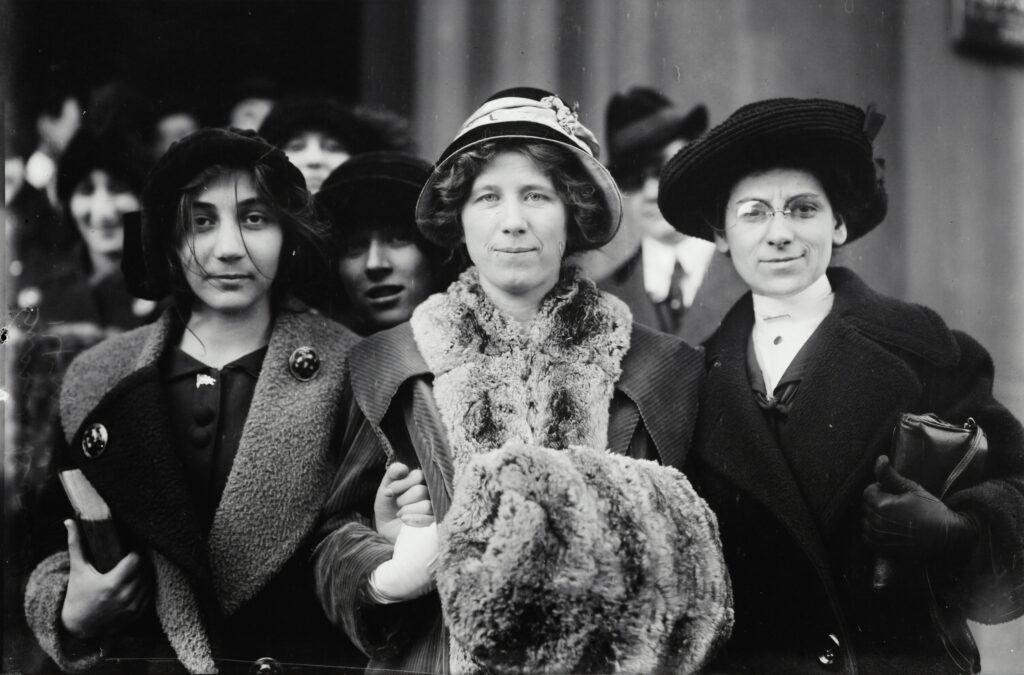 a-group-of-people-walking-down-a-street-next-to-a-tall-building with st patrick's day banners